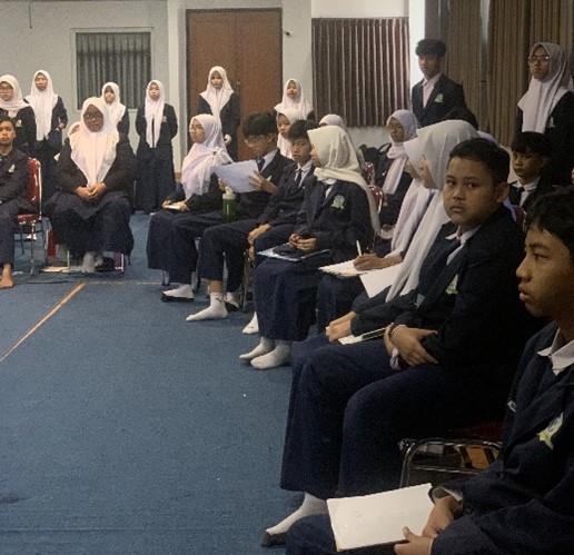 Selama dua hari penuh, peserta mengikuti rangkaian kegiatan yang padat dan bermakna. Hari pertama dimulai dengan apel pembukaan, pengecekan barang, dan materi kepemimpinan yang disampaikan oleh para guru pembina, termasuk materi tentang OSIS, organisasi, leadership, dan administrasi. Peserta juga diajak untuk aktif dalam sesi yel-yel, evaluasi, latihan baris-berbaris (PBB), hingga kegiatan spiritual seperti dzikir petang, tadarus, dan sholat berjamaah. Malam harinya, suasana semakin hangat dengan kegiatan post to post dan unjuk bakat yang ditutup dengan api unggun sebagai simbol semangat dan kebersamaan.